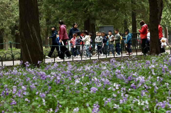 开春以来,京城春日研学热度高涨,天坛公园迎来二十余所中小学游学团队,园内盛放的二月兰、飘香的丁香大道成为热门打卡地,公园也全力做好服务保障,助力研学活动有序开展。