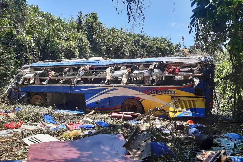 越南崑嵩省一大巴跌下20多米山崖,已致5死26伤