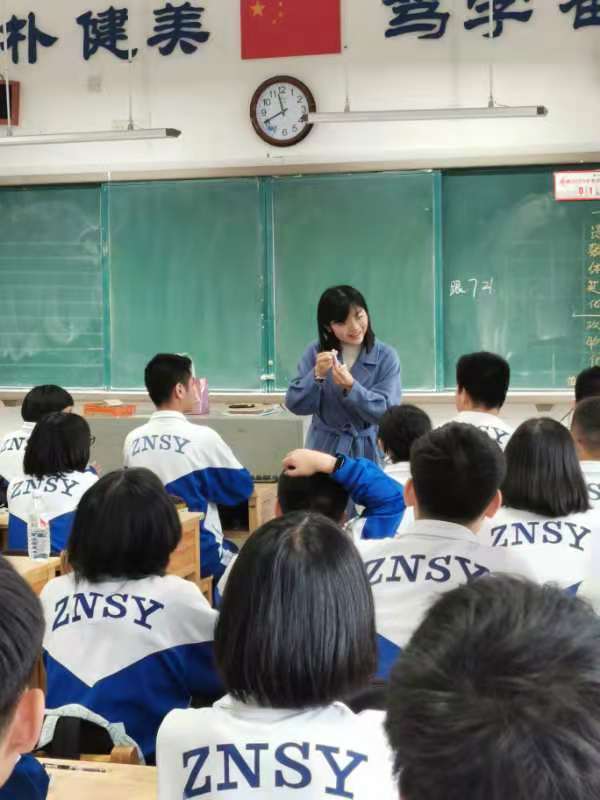 2014年参加工作的任欣敏是个90后。如今,她在周南中学教授初三年级两个班级的化学课,同时也会在学生社团中教授一些化学知识。前几天,发现天气越来越干燥的她带着社团学生做了唇膏和口红。