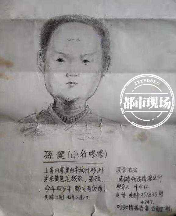 1992年5月3日,江西南昌幽兰镇的孙国和、万根凤夫妇年仅4岁多的儿子孙健在南昌市青云谱区洪都菜场失踪。