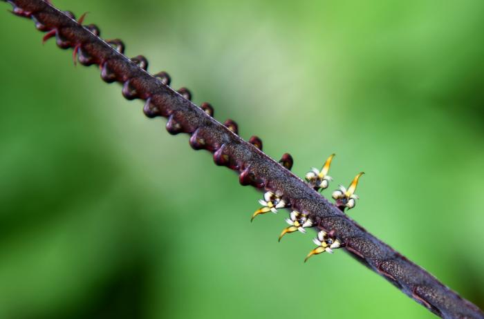 这是在国家(海南)热带植物隔离检疫中心兰科物种检测鉴定资源圃内拍摄的眼镜蛇石豆兰(5月21日摄)。