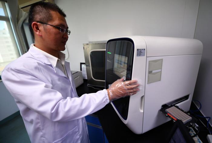 5月21日,科研人员在国家(海南)热带植物隔离检疫中心实验室进行转基因产品检测。 位于海南的国家(海南)热带植物隔离检疫中心是海口海关直属单位,也是集有害生物检疫鉴定、转基因检测、物种鉴定、隔离检疫、检疫技术研究和引进、推广世界优良植物品种于一身的植物检疫技术部门。