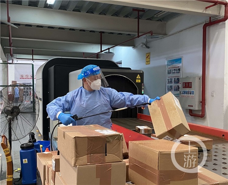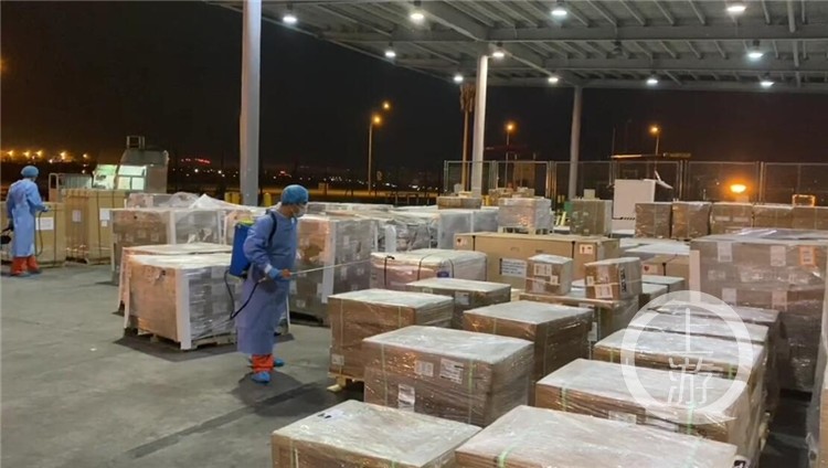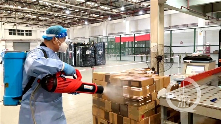 9月11日,上游新闻记者从重庆江北国际机场获悉,针对国际疫情严峻形式,江北机场已进入全面消杀的常态化防控模式,将国际进口货物“先整板消杀再六面消杀”,每天消杀上百吨国际货物,守牢守住重庆“空中门户”。