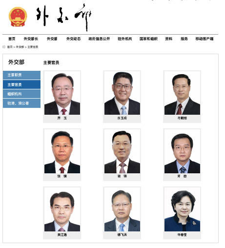 10月24日,外交部官网“主要官员”一栏更新。