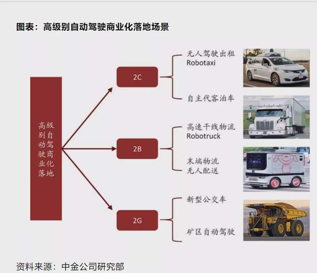 比如:Robotruck(无人卡车)、智能驾驶Tier 1(一级供应商)、无人配送、Robobus(无人公交)……这些属于低风险、易落地,但市场想象空间没那么大的场景。