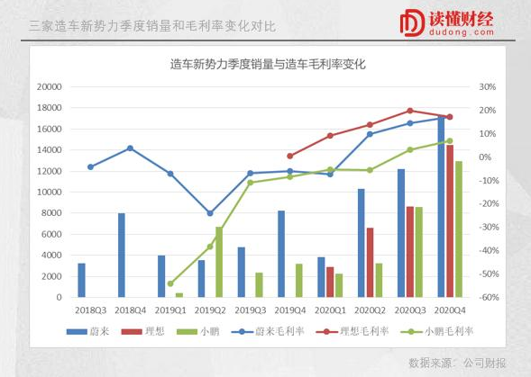 通过对比“蔚小理”在2020年的财报就会发现,小鹏、蔚来、理想去年全年的造车毛利率分别为3.5%、12.7%、16.4%。显然,在动力电池组上省去的成本让理想汽车成为了最快实现毛利率转正的造车新势力。