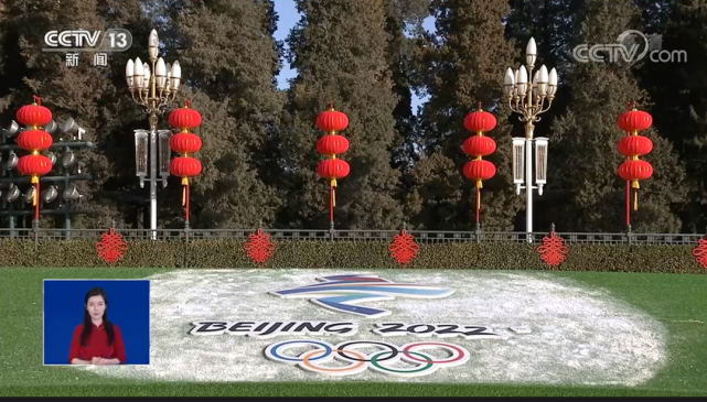 花坛中央是北京冬奥会会徽,昭示各国一起向未来。