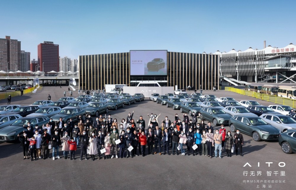 3月5日,AITO问界M5交付启动仪式在上海、广州、杭州、重庆等多个城市同步举行。即日起,AITO问界M5将在36个城市、100余家用户中心开启交付。