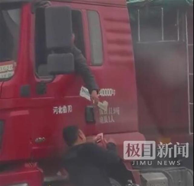 河北一男子当街拦大货车讨钱,司机:给20元嫌少用头撞车门