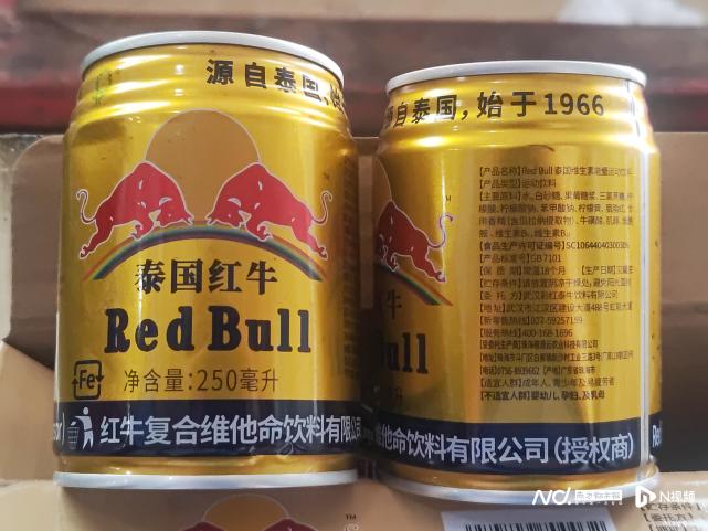 据悉,执法人员当日在当事人仓库、生产车间内发现由该公司生产加工的“Red Bull泰国维生素能量运动饮料”1556箱(250ml*24罐/箱)及生产上述产品的包材一批。