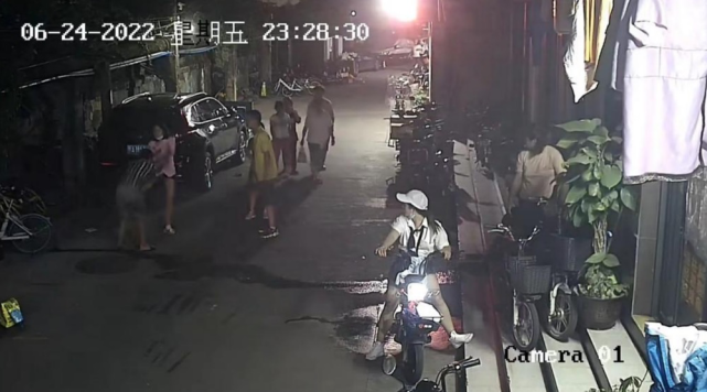 根据监控视频显示,6月24日十一点二十四分,2对男女走在在一条小巷里,其中一名身穿黑白条纹短袖的男子走路踉踉跄跄,推倒了停放在路边的电动车,男子身旁的粉衣女子见状立马冲上前狠狠踹了他一脚,男子随即摔倒在地,鞋子也飞了出去,同行的黄衣男子将被醉酒男子打倒的电动车扶起。