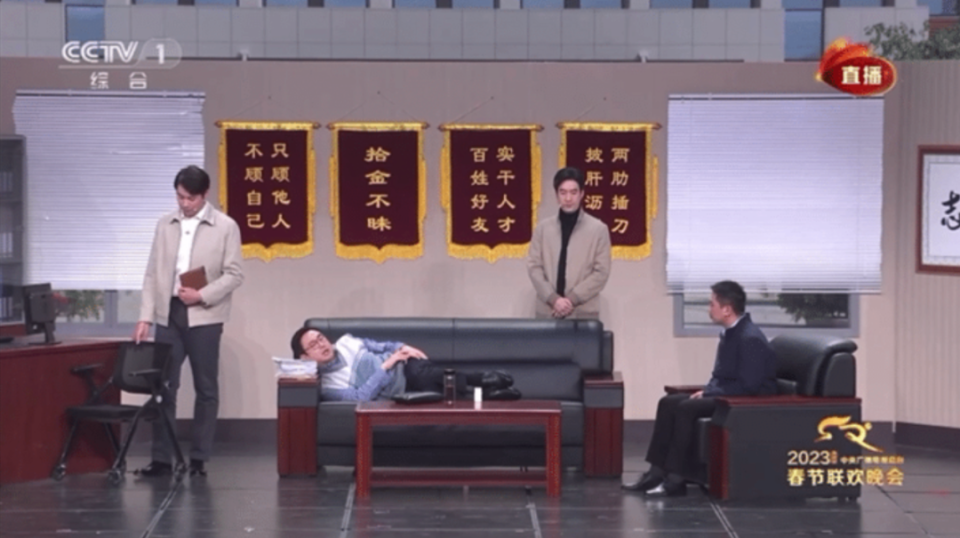 小品讲述了一个躺平式的干部,在工作中不思进取,当面一套、背后一套,面对领导和百姓时截然不同的态度。