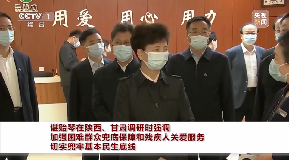 据央视4月27日报道,近日,国务委员谌贻琴在陕西省、甘肃省调研民政和残疾人工作。这也是谌贻琴首次专门就民政和残疾人工作开展调研。