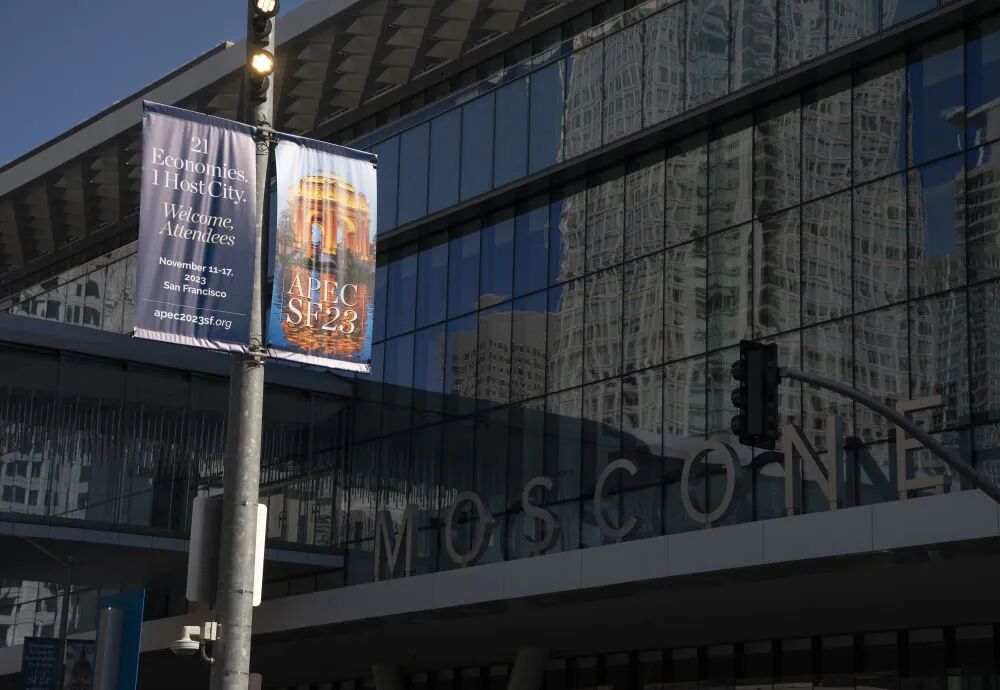 旧金山的亚太经合组织会议场地外的宣传海报