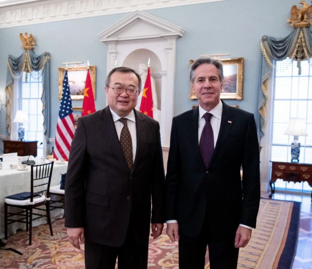 当地时间1月12日,刘建超在华盛顿会见美国国务卿布林肯。