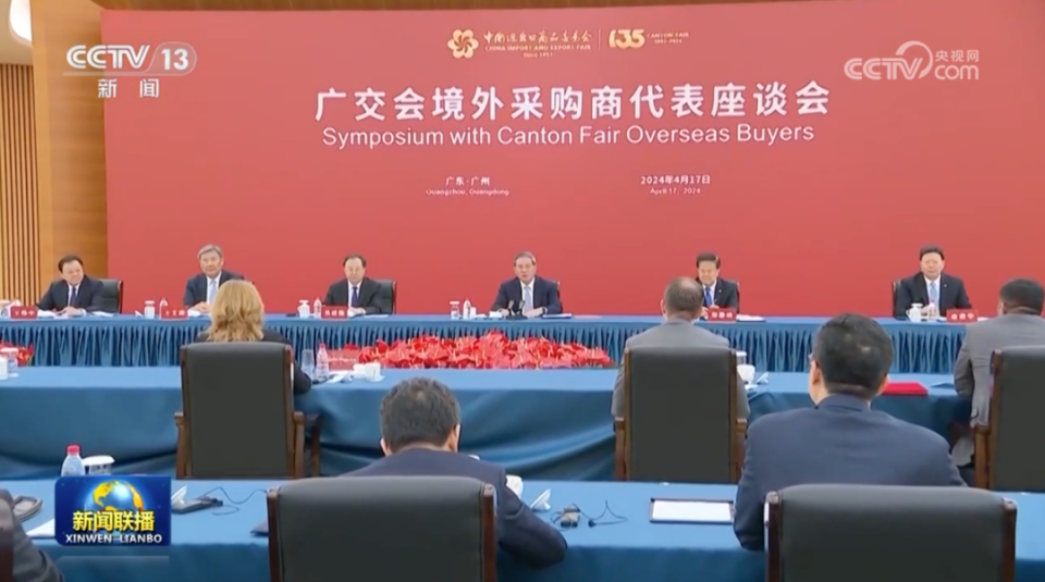 4月17日下午,国务院总理李强在广州同参加第135届中国进出口商品交易会(广交会)的境外采购商代表座谈。