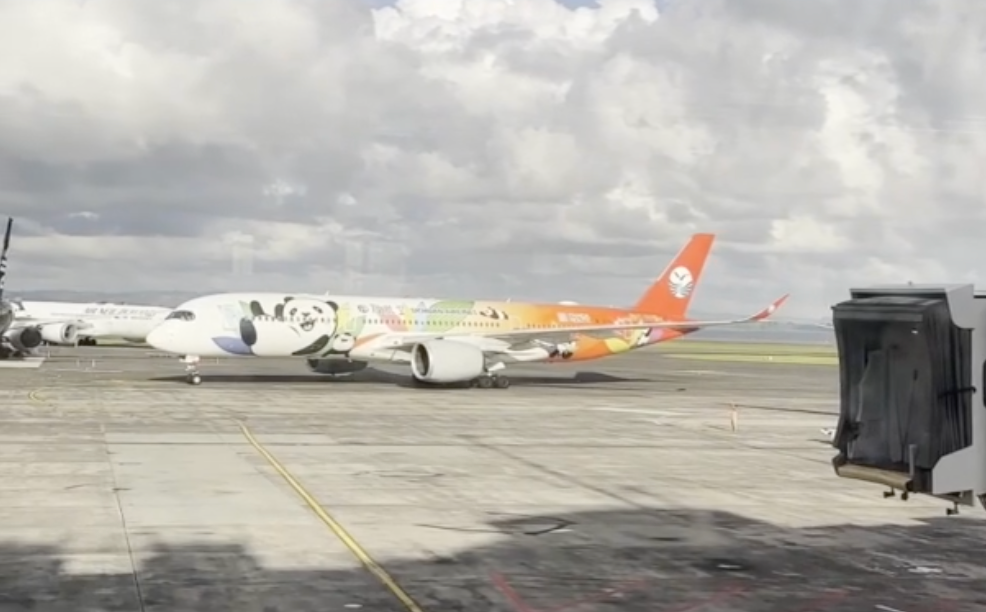 这是中国四川航空公司执飞的成都至奥克兰直飞航班中断四年多后正式重启。