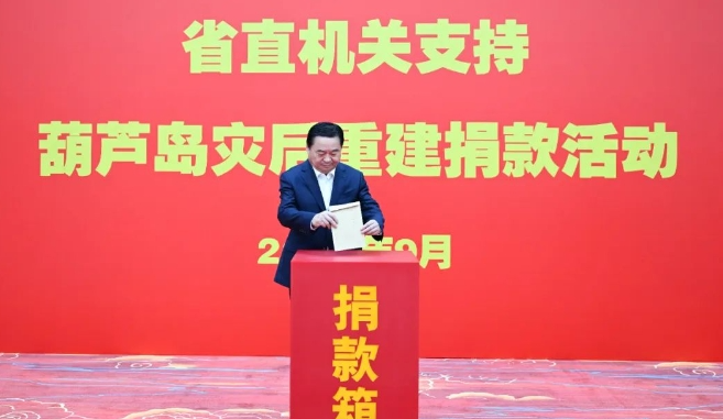 辽宁微信公众号9月19日消息,近日,辽宁省省直机关深入贯彻落实习近平总书记关于防汛抗洪救灾工作重要指示精神,开展支持葫芦岛灾后重建自愿捐款活动,广泛动员各方力量共同参与葫芦岛市灾后重建,形成共克时艰的强大合力,帮助受灾群众早日重建家园。省委书记、省人大常委会主任郝鹏,省委副书记、省长李乐成,省政协主席周波,省委副书记、沈阳市委书记王新伟参加捐款活动并带头捐款。