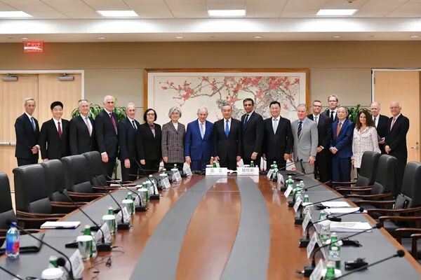 当地时间2024年9月25日,中共中央政治局委员、外交部长王毅在纽约联大期间与美中关系全国委员会、美中贸易全国委员会、美国商会、阿斯彭学会、亚洲协会、对外关系委员会的代表成员座谈交流。