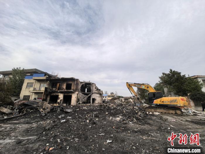 图为淮南市潘集区架河镇王圩村一自建房火灾事故现场 张强 摄