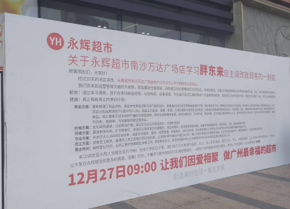 当日,证券时报记者也对该门店进行了实探。在超市门口,一副巨大的告示牌上展示了永辉超市致顾客的一封信,这封信中介绍,该门店在30天的闭店调改中重新梳理了商品结构,商品共性率接近胖东来门店的80%。