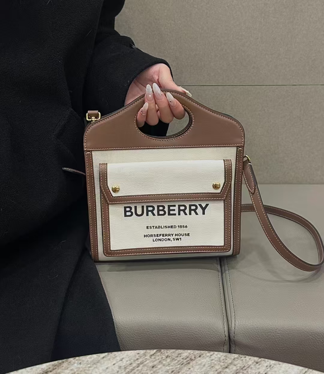 BURBERRY帆布拼皮包,耐磨轻便,拼皮处采用明缝线,邮差包的款式,复古感扑面而来,甜酷学院风的穿搭,满满的burberry英伦风,在帆布系列中,属它的热度高。