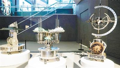 展览中不乏因技术迭代驱使人们加强对话的前沿作品。数件来自国内外的作品通过沉浸式装置、可穿戴设备、交互界面等媒介,让观众亲身体验“人机联结”的感知状态。其中,聂士昌的《滴动仪》《循回仪》《璇玑仪》(见图)便是机械动力与数字算法融合的代表,探索着机械运动与空间反馈的交互逻辑。以美国艺术家扎克·利伯曼《每日速写》为代表的作品,则通过捕捉观众的手势、声音与面部表情来驱动艺术创作,通过算法生成获得探索艺术主体表达的无限可能,标志着艺术正从静态观赏走向动态共创。这类作品展示了技术作为创作方法论的潜力,为理解数字时代的创造性思维提供了新视角。