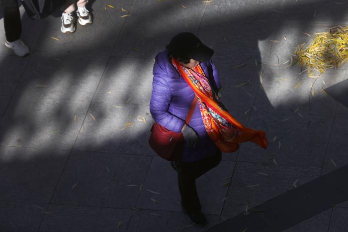虽然气温走低,但周末人们还是走出家门享受阳光。