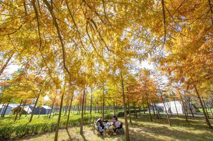 11月1日,市民在河南省洛阳市伊滨区伊水游园内赏景休闲。新华社发(张怡熙摄)