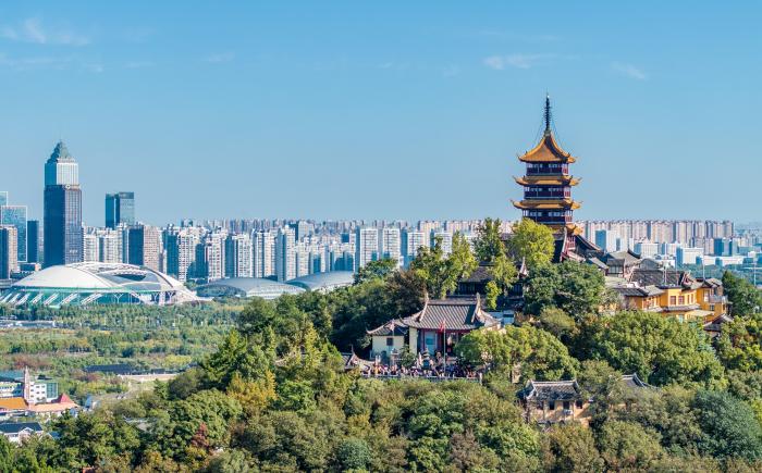10月29日重阳节,人们来到江苏省南通市的狼山登高祈福(无人机照片)。新华社发(翟慧勇摄)