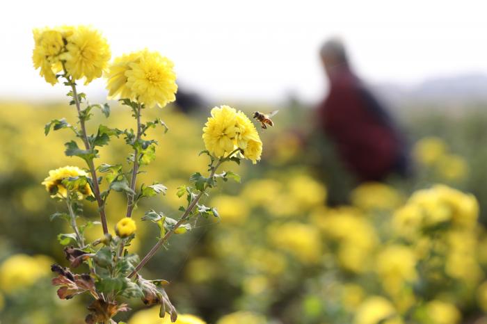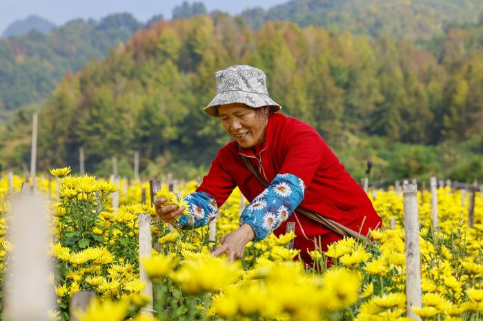 10月28日,安徽省黄山市歙县溪头镇桃源村农民采摘金丝皇菊。新华社发(施亚磊摄)