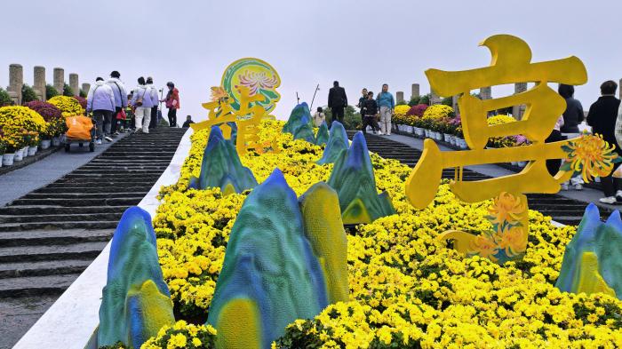 10月25日,人们在河南省开封市举行的以“菊韵宋风,大美中国”为主题的中国第十五届菊花展览会主会场龙亭景区观赏菊花。新华社发(张子斌摄)