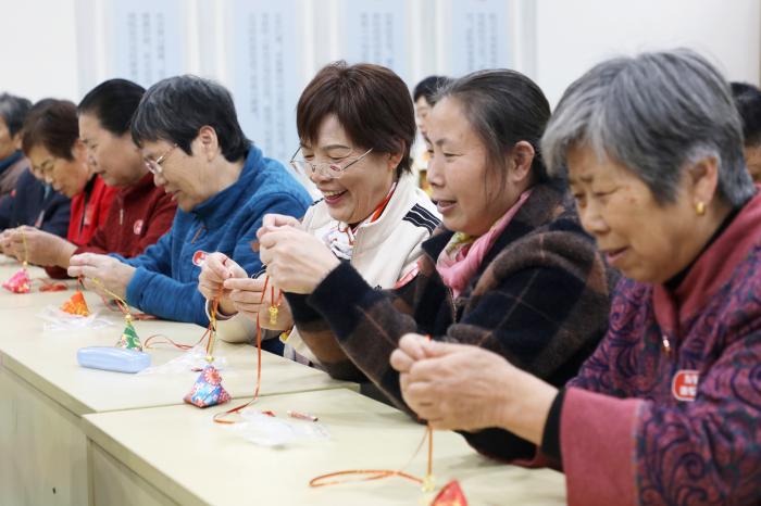 10月27日,在江苏省常州市武进区的一家养老院,老人们制作茱萸香囊,迎接重阳节。新华社发(陈暐摄)