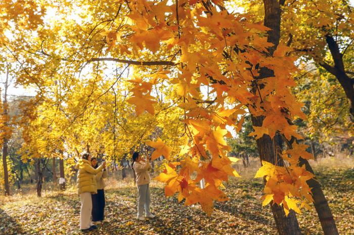 11月3日,河北省遵化市市民在一处公园赏景拍照。新华社发(刘满仓摄)