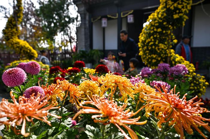 11月9日,人们在河南商丘古城观赏菊花。新华社发(李恒摄)