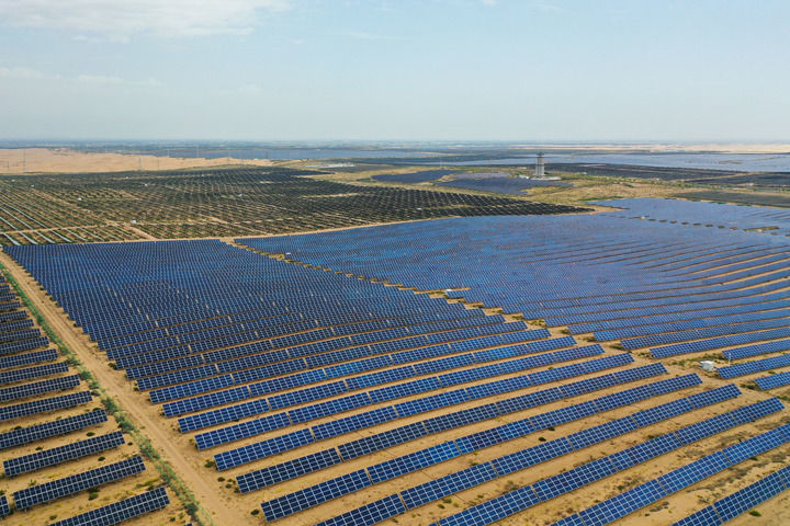 这是2025年9月10日拍摄的位于库布其沙漠的鄂尔多斯市达拉特旗光伏基地。新华社记者 李志鹏 摄