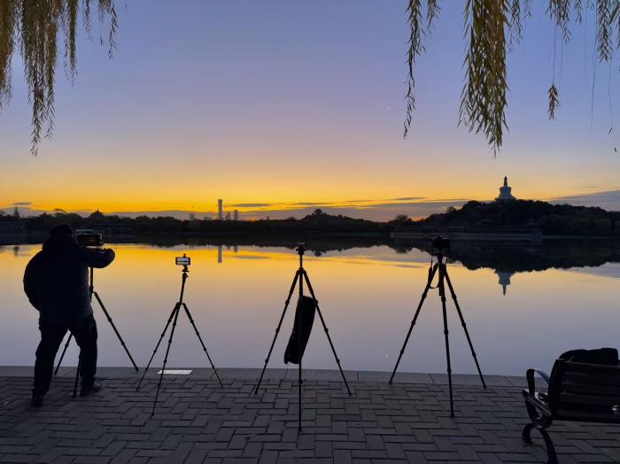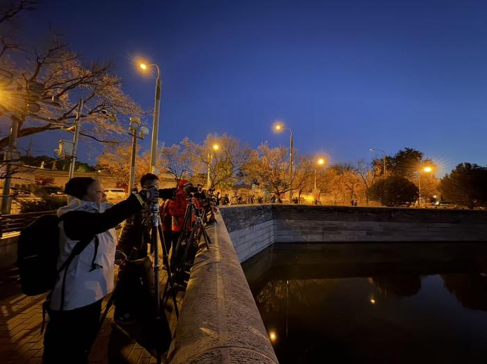 北京青年报记者现场看到,不到6点,故宫角楼和护城河畔已聚集百余名摄影爱好者,三脚架沿河岸排开。