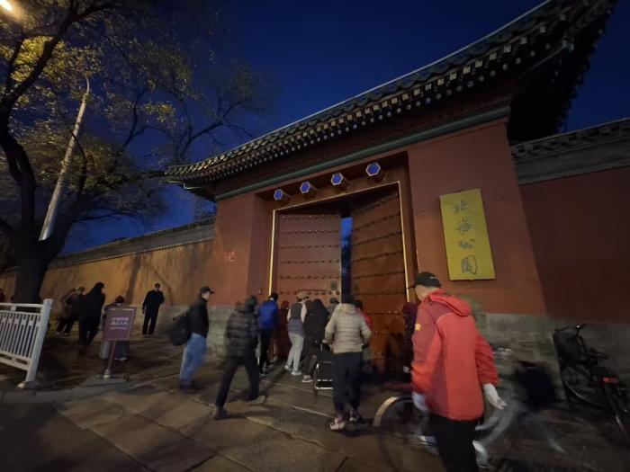 早上6点28分,随着北海公园的大门打开,大批市民和摄影爱好者涌入公园。