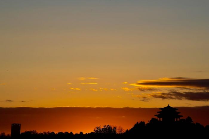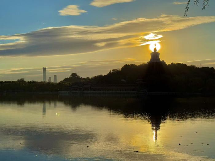 美图|朝霞染京城 地标建筑同框引市民追拍