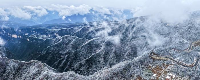 湖北省秭归县茅坪镇罗家村雪景(11月18日摄,无人机全景照片)。新华社发(王罡摄)