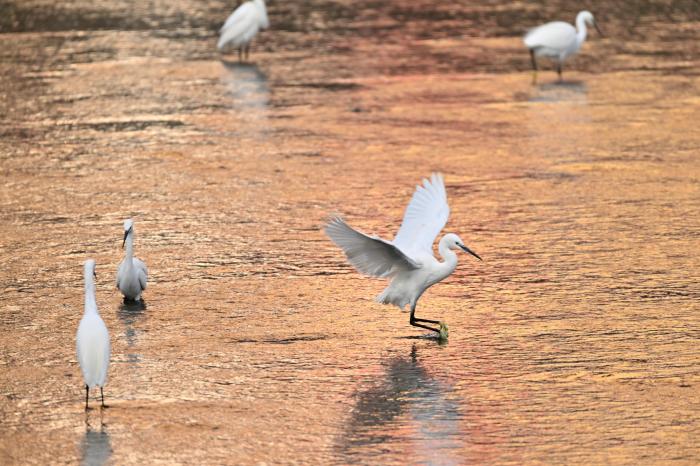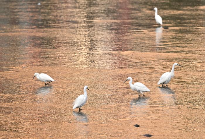 11月19日,白鹭在湖北省宣恩县城贡水河觅食。新华社发(宋文摄)