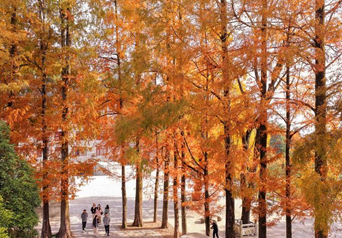 11月19日,游客在湖南省衡阳市南岳衡山风景区赏景游玩(无人机照片)。新华社发(曹正平摄)