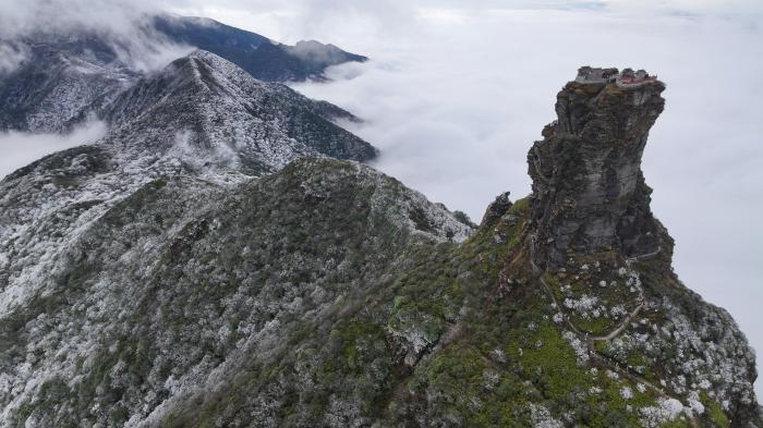 11月18日在贵州梵净山景区拍摄的冬景(无人机照片)。新华社发(李鹤摄)