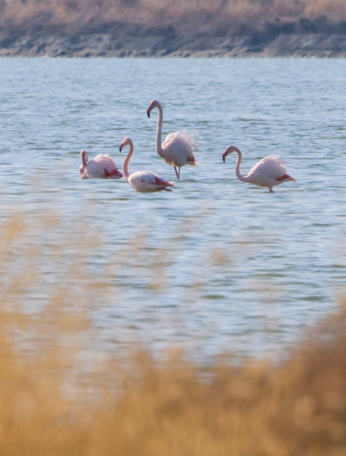 11月19日,火烈鸟在山西运城盐湖栖息。新华社发(闫鑫摄)