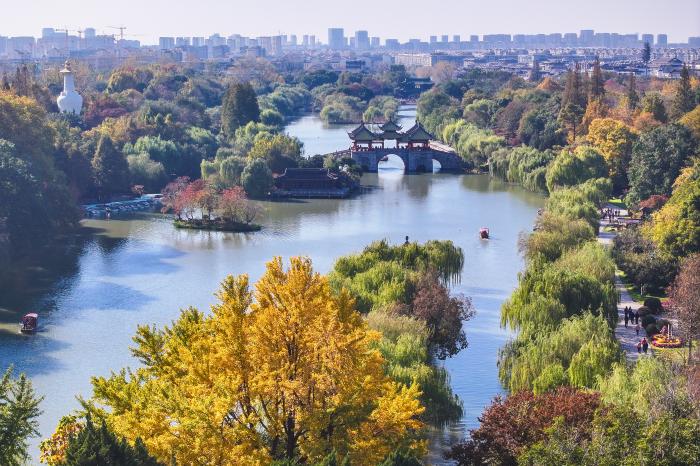 11月19日拍摄的江苏扬州瘦西湖风景区(无人机照片)。新华社发(齐立广摄)