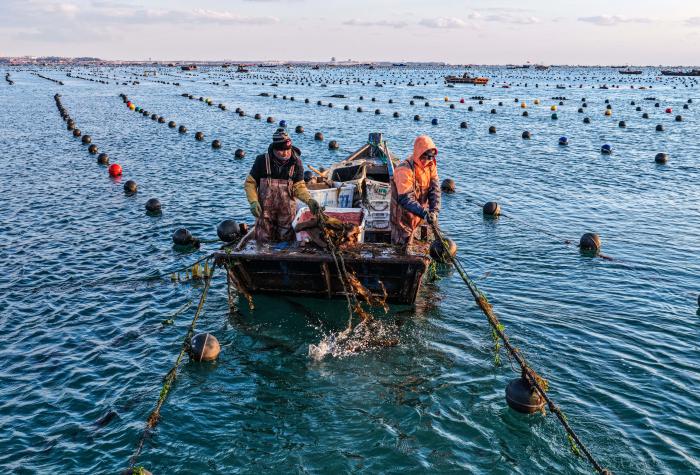 视窗 | 山东荣成:规模化养殖 海带迎来丰收