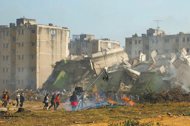 在第三部分展厅中展出有《高潮的重构》《焦虑的排练》《悲剧的模拟》三个系列,以及部分大尺幅作品、《隐秘切口》的部分作品。林安罗在这一部分中以极为尖锐的方式持续不断地“冒犯”观众,颠覆着观众对于真实与虚构的感受。对灾难现场的模拟、排练,使用巨大尺幅画面制造出的宛如身临其境一般的体验等等刻意为之的设置不断迷惑着观众,而观众先是自这些画面的提示中生发出对于悲剧的想象,从而加深共感,而同时又因这种想象的力量误入摄影师埋下的陷阱,从而无法辨别真实的感受。
