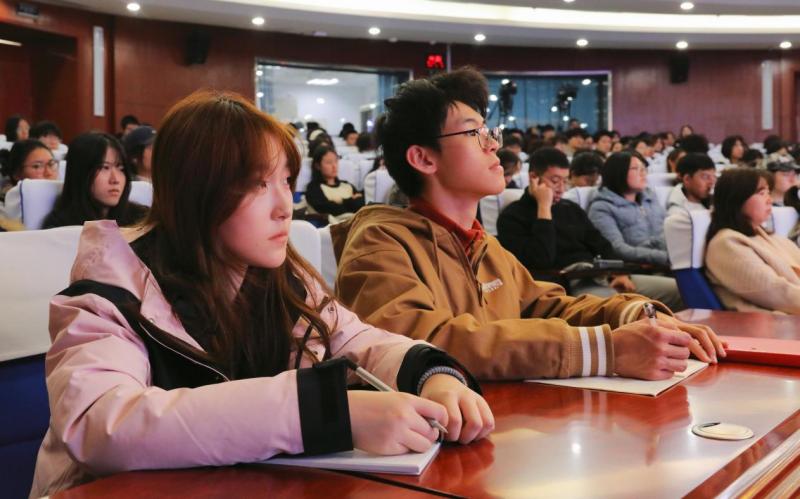 赵锋通过一系列生动鲜活的实践案例和详实数据,向同学们阐述了“十四五”时期我国生态文明建设取得的丰硕成果,详细介绍了北京市着眼高质量发展和“四个中心”功能建设,坚持“大城市带动大京郊,大京郊服务大城市”,扎实推进乡村全面振兴和美丽北京建设取得的重要进展。他还深入讲解了学校发挥办学特色和学科专业优势,聚焦北京深化生态文明实践以及推动农业中关村建设、种业之都建设、花园城市建设、“百千工程”建设等重要需求,积极践行“两山”理念的生动实践与重要成果。