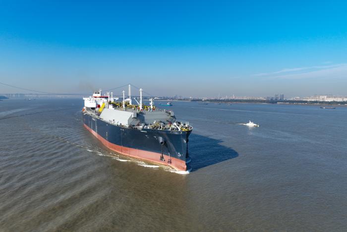 11月20日,江苏扬子鑫福造船有限公司建造的17.5万立方米LNG运输船“鑫福124”轮,在海事等部门全程协调保障下,于江苏泰州泰兴市顺利出江试航。