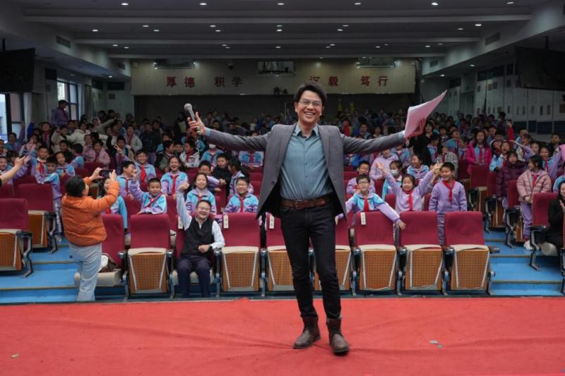 最后,国家级广播电视媒体制作人、主持人王驿为同学们带来历史文化讲座《穿越时空的智慧宝藏》。讲座以“穿越”和“寻宝”为线索,通过悬念引领孩子们依次结识四位个性鲜明的古代“大神”。全程以精彩故事贯穿,让孩子们在“好玩”“有料”的体验中,切身感受中华经典的不朽魅力,萌发主动探索的兴趣。